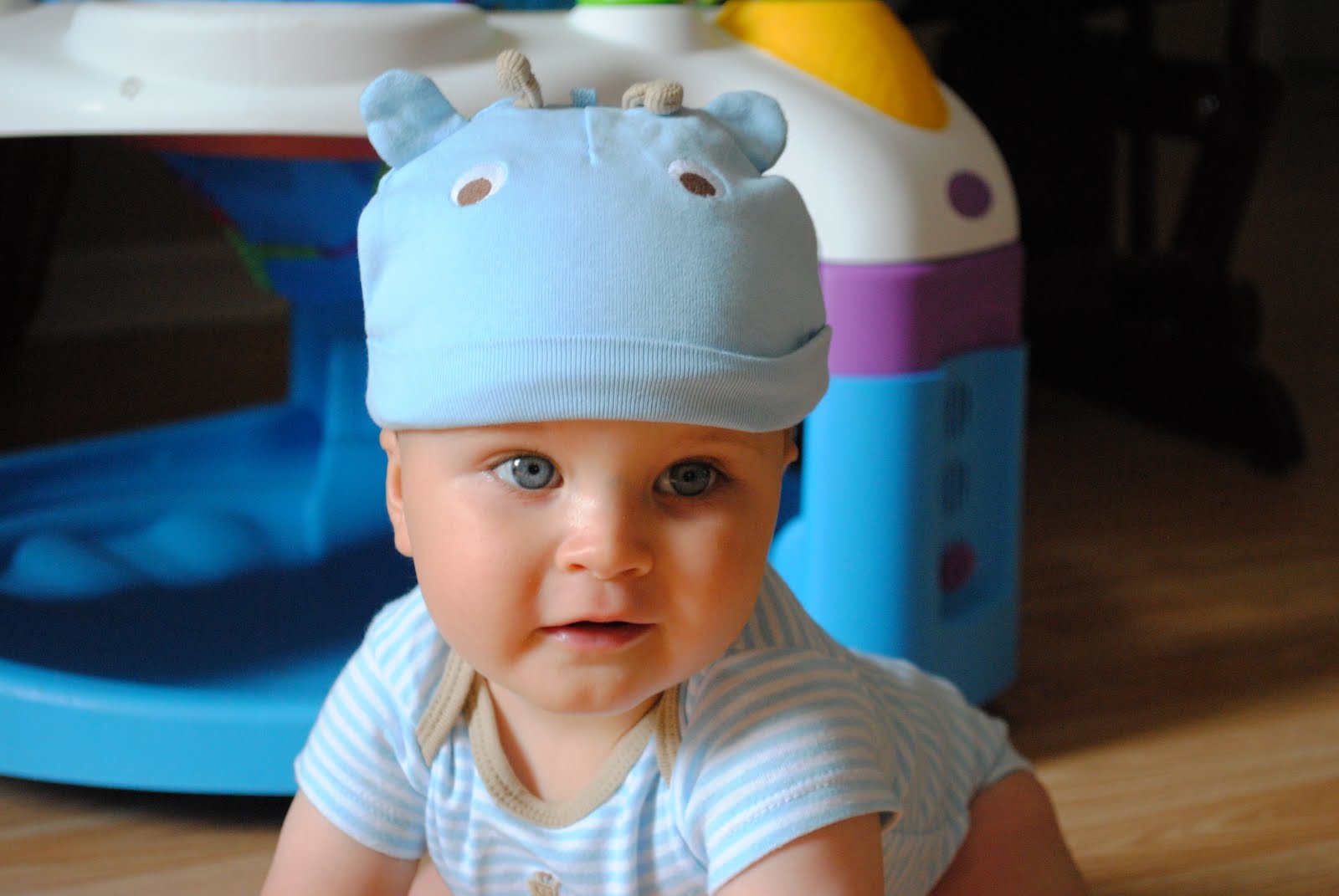 Super cute in his giraffe hat. He never lets me put hats on him!